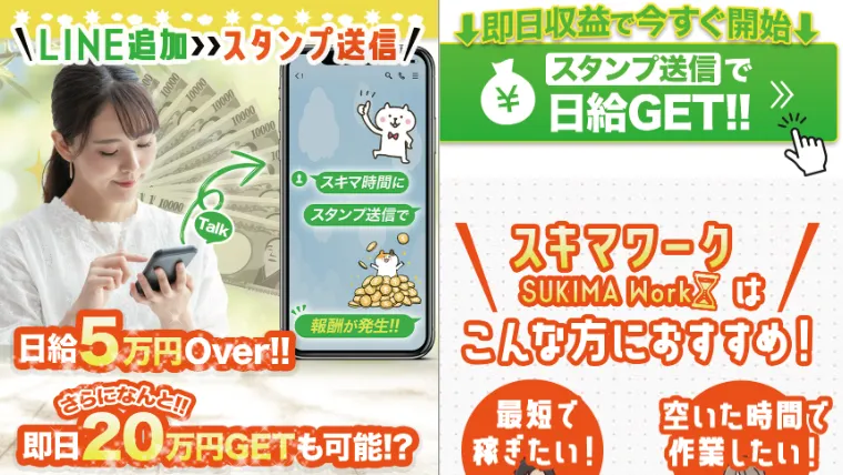 スキマワークは、LINEアプリからスタンプ送信すると報酬が発生すると宣伝を行う副業サイトです。