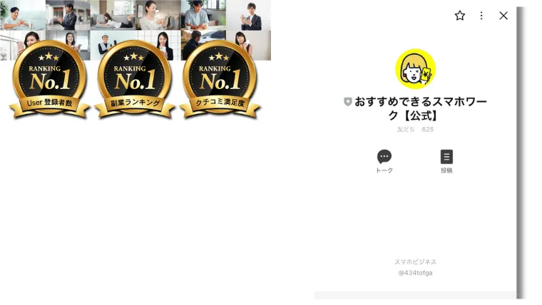 信ぴょう性を確認するため、実際に「おすすめできるスマホワーク」の公式LINEを追加してみました。