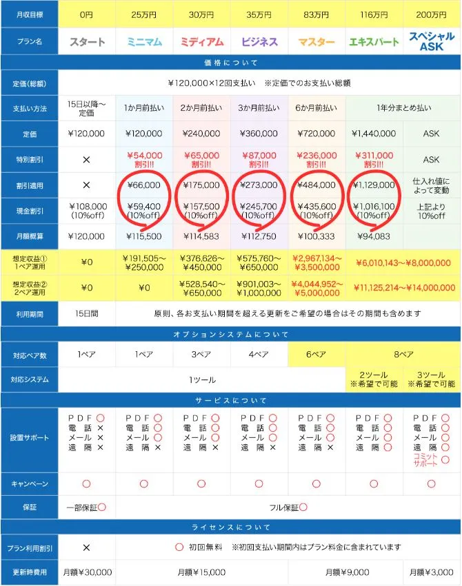 定価で12万~144万円、割引にて59,400円~1,016,00円もの高額サポートプランへの契約を迫られるようです。