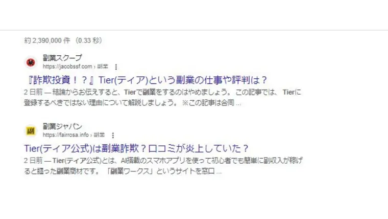 これらの記事を見てみると、Tier(ティア)を酷評している内容であり副業詐欺の可能性が見えてきました。