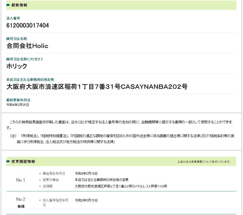 以下、運営を行う合同会社Holicの会社情報です。