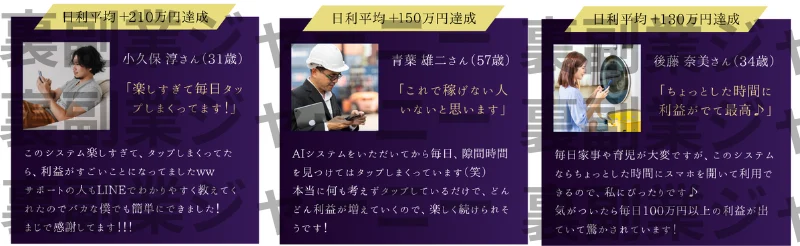 を行う事でAIが利益を積み上げる仕組みになっているようです。ワンタップで10,000円が22,000円(12,000円利益)と次々と利益が生み出されるようです。