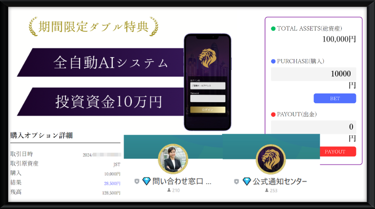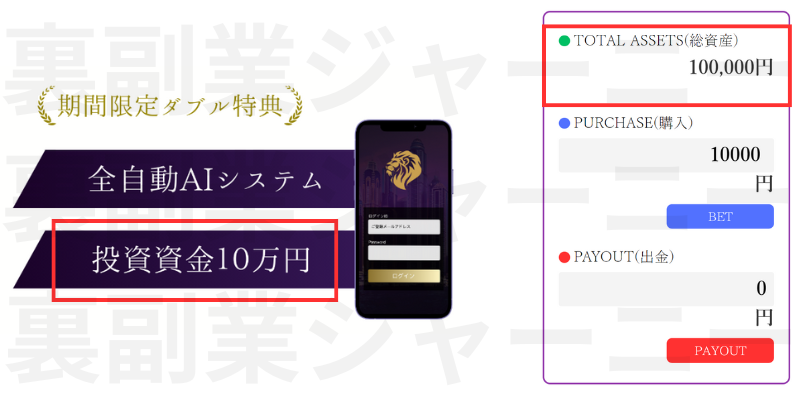 全自動AIシステムを使用し資産10万円を増やしていくようです。無料で10万円を手に入れてシステムも無料で使えるなんてすごい!とはしゃぎたい所ですが