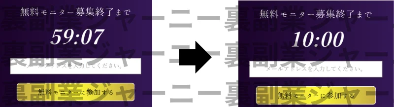 残り10:00になるとカウントダウンが止まりました。何度試しても10:00で止まるため意図的に仕掛けているのでしょう。焦って登録する必要はありません。